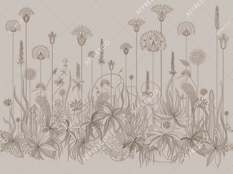 Фрески Affresco из коллекции Fantasy представляют собой уникальные фотообои, которые создаются вручную. Они идеально подходят для декорирования гостиной и спальни, добавляя изысканность благодаря изображению цветов и птиц.