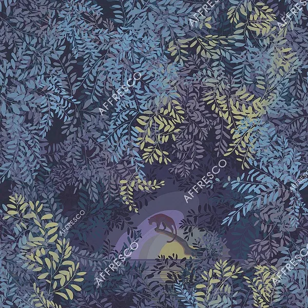 Фрески Affresco из коллекции Fantasy представляют собой элегантное решение для оформления интерьера. Они выполнены в темных синих и фиолетовых тонах, изображая животных и растения, что позволяет создать уникальную атмосферу в помещении.