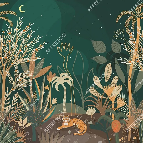 Фрески Affresco из коллекции Fantasy представляют собой рулонный декор, который имитирует классическую фреску с изображениями животных и растений. Этот продукт подходит для оформления детских и спальных комнат, добавляя натуральные оттенки зеленого, которые создают атмосферу уюта и близости к природе.