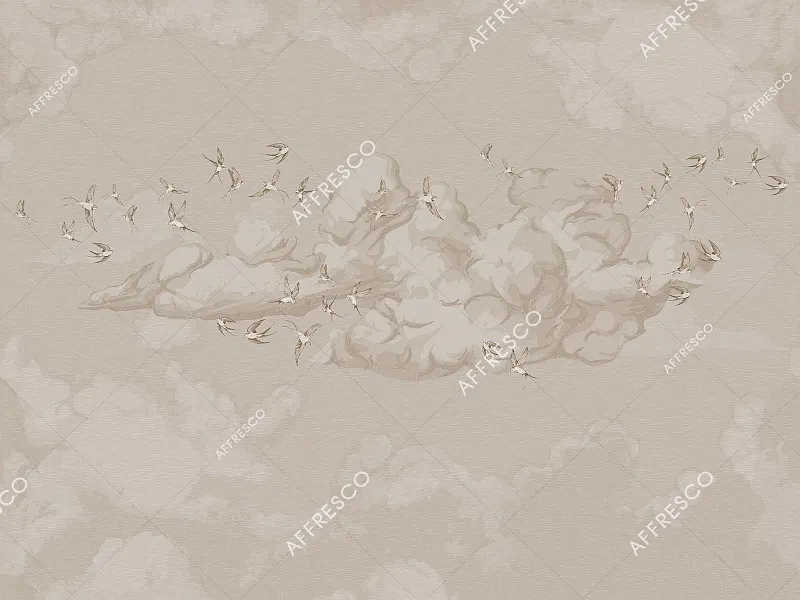 Фрески Affresco из коллекции Fantasy представляют собой точную имитацию фресок, выполненную в рулонах. Они идеально подходят для создания уникального интерьера в детской, кухне или спальне благодаря сюжетному рисунку с изображением птиц и нейтральным цветовым оттенкам.