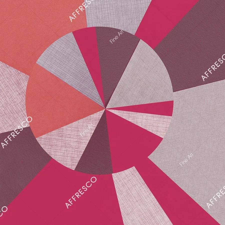 Фрески Affresco из коллекции Fine Art представляют собой декоративные элементы, созданные из флизелина. Их можно использовать для оформления различных интерьеров, таких как гостиные, кабинеты и спальни. Рисунок включает геометрические узоры в красных и розовых тонах.