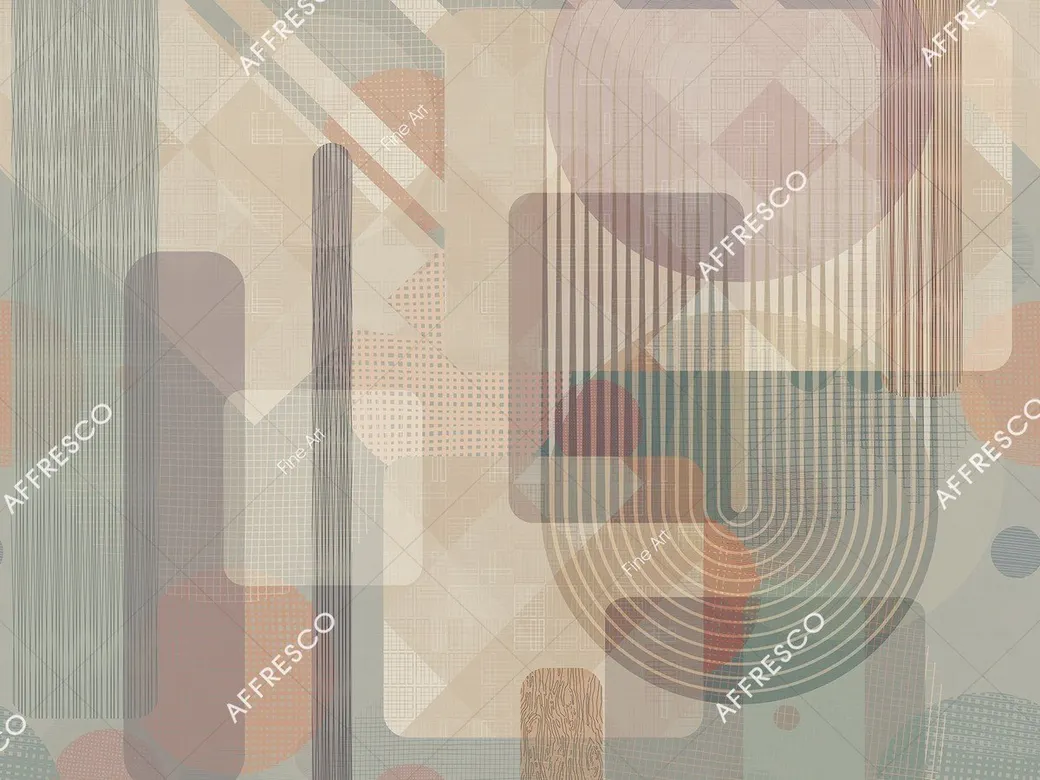 Фрески Affresco из коллекции Fine Art представляют собой качественную имитацию традиционных фресок. Изображение геометрического узора выполнено в светлых бежевых и зеленых тонах, что делает их подходящими для современных интерьеров в минималистском стиле.