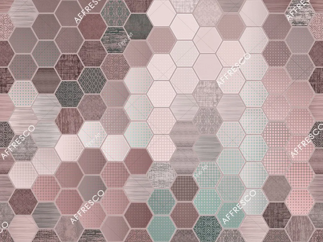 Фрески Affresco из коллекции Fine Art представляют собой сочетание традиционного мастерства живописцев и современных технологий. Геометрический узор в зеленом и розовом цветах подходит для оформления различных помещений, таких как гостиная, спальня и кабинет.