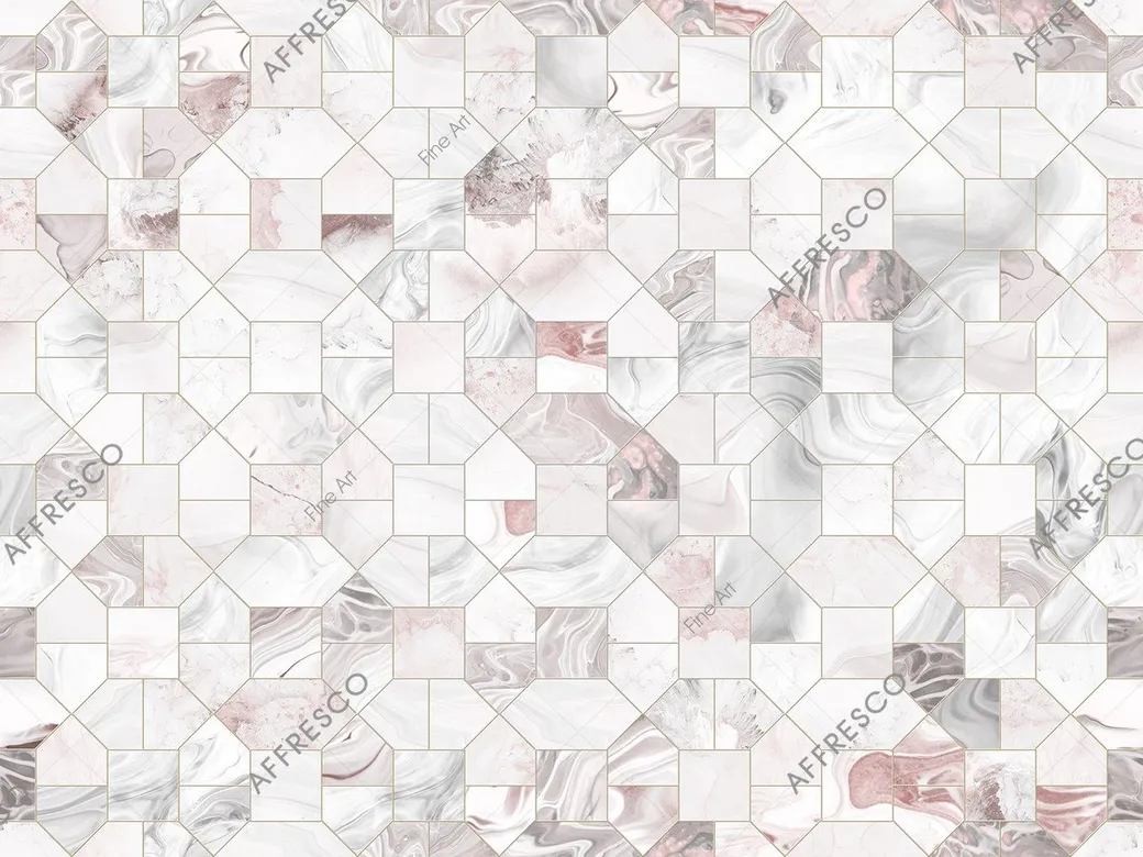 Фрески Affresco из коллекции Fine Art предназначены для создания стильного интерьера. Они оформлены в геометрическом узоре, что делает их универсальным решением для различных помещений. Цветовая гамма включает белый, серый и розовый оттенки.