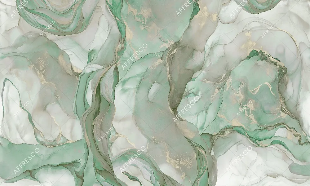 Фрески Affresco из коллекции Fluid представляют собой уникальные фотообои, созданные вручную. Они подойдут для декорирования современных интерьеров благодаря абстрактному рисунку и успокаивающим оттенкам зеленого.
