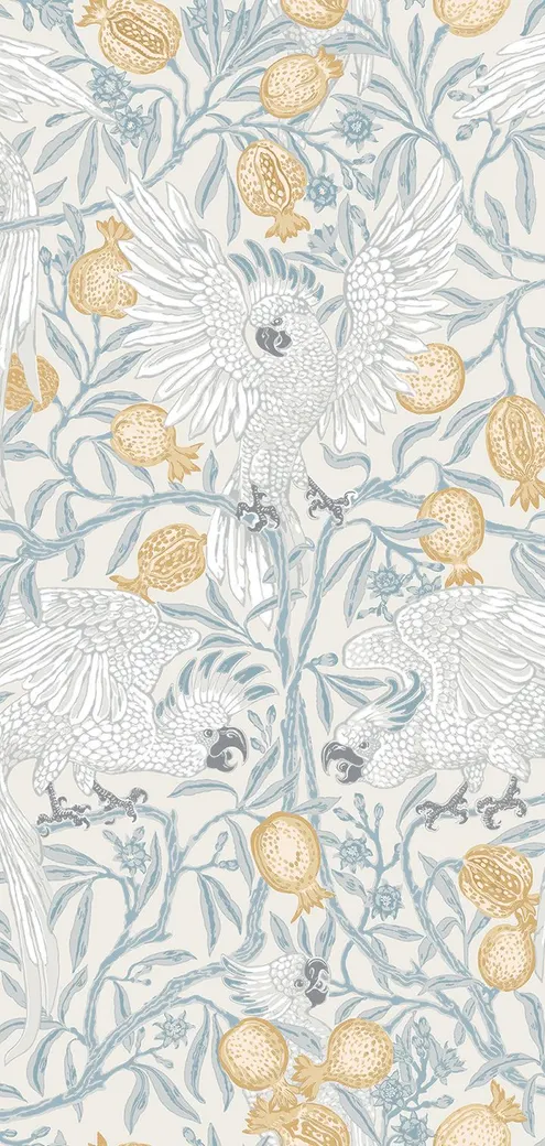 - Уникальный дизайн: Рисунок в стиле У. Морриса с изображением птиц, фруктов и овощей.