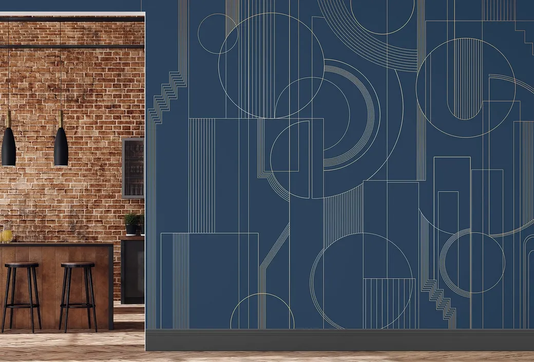 Фрески Affresco из коллекции Lines представляют собой уникальные фотообои, имитирующие фрески. Эти обои идеально подходят для современных интерьеров, включая спальни и гостиные, благодаря своему геометрическому узору.