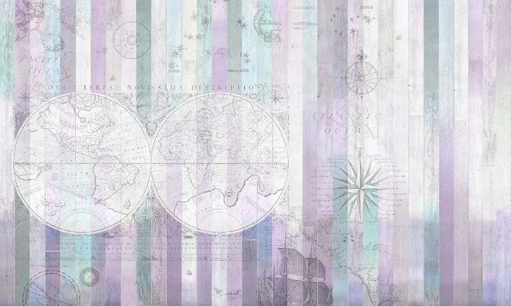 Фрески Affresco из коллекции New Art представляют собой уникальный декор с изображением карт мира. Эти фотообои подходят для оформления кабинетов и детских комнат, добавляя стиль и индивидуальность.