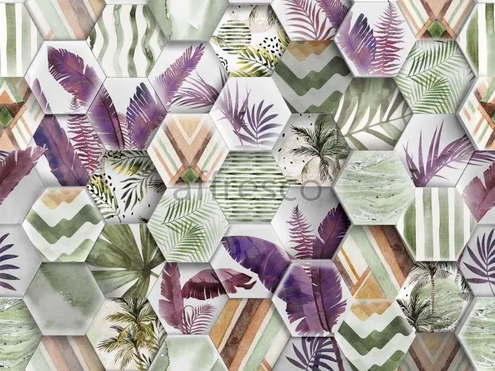 Фрески Affresco из коллекции New Art представляют собой рулонный декор, который имитирует классическую фреску. Эти фотообои с геометрическим узором и растительными мотивами подходят для различных современных интерьеров, обеспечивая выразительность и гармонию в декоре.