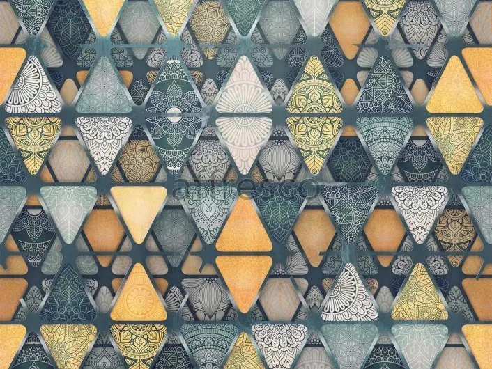 Фрески Affresco из коллекции New Art представляют собой стильный элемент декора с геометрическим узором. Выполненные в желтых и синих тонах, они идеально подойдут для оформления гостиной, спальни или кабинета.