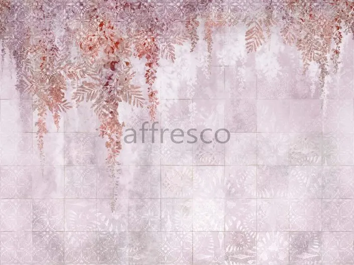 Фрески Affresco из коллекции New Art представляют собой уникальные изделия ручной работы. Они оформлены в современном стиле и подходят для использования в гостиных и спальнях. Основной рисунок включает цветы и квадраты, выполненные в нежных розовых тонах.