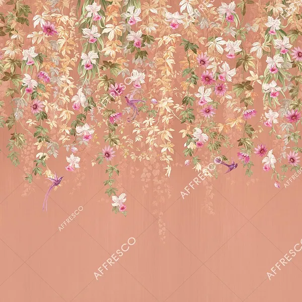 Фрески Affresco из коллекции Rio представляют собой качественные фотообои с изображением цветов и птиц. Они подходят для использования в гостиных и спальнях, добавляя яркие акценты в интерьеры благодаря оранжевым и красным цветам.