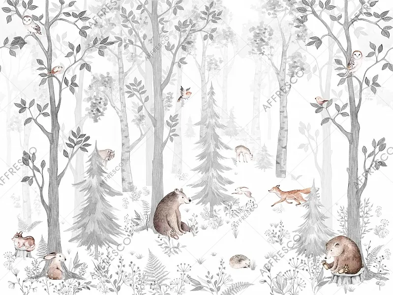 - Разнообразие рисунков: Дизайн включает изображения животных, растений, веток и листьев, подходящих для детского интерьера.
