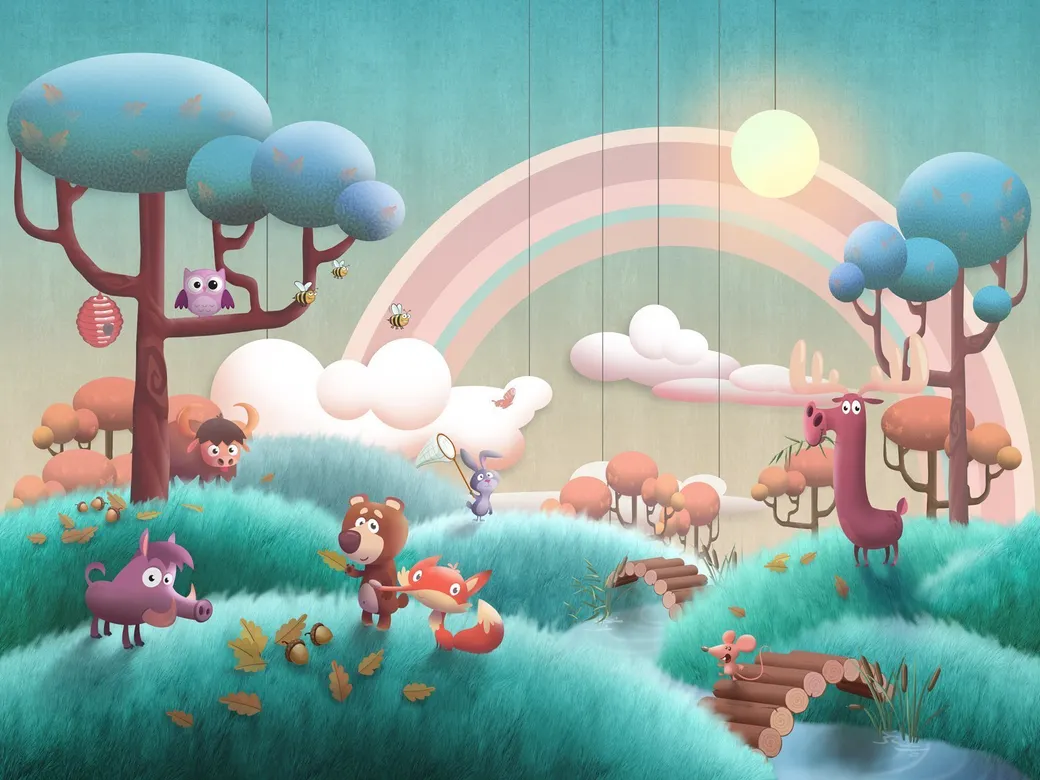 Фрески Affresco из коллекции "Сказки" предназначены для оформления детских комнат. Изготовленные из флизелина, они обеспечивают высокую стойкость к повреждениям и легкость в уходе. Яркие рисунки с изображениями животных создают образовательную и развлекательную атмосферу.