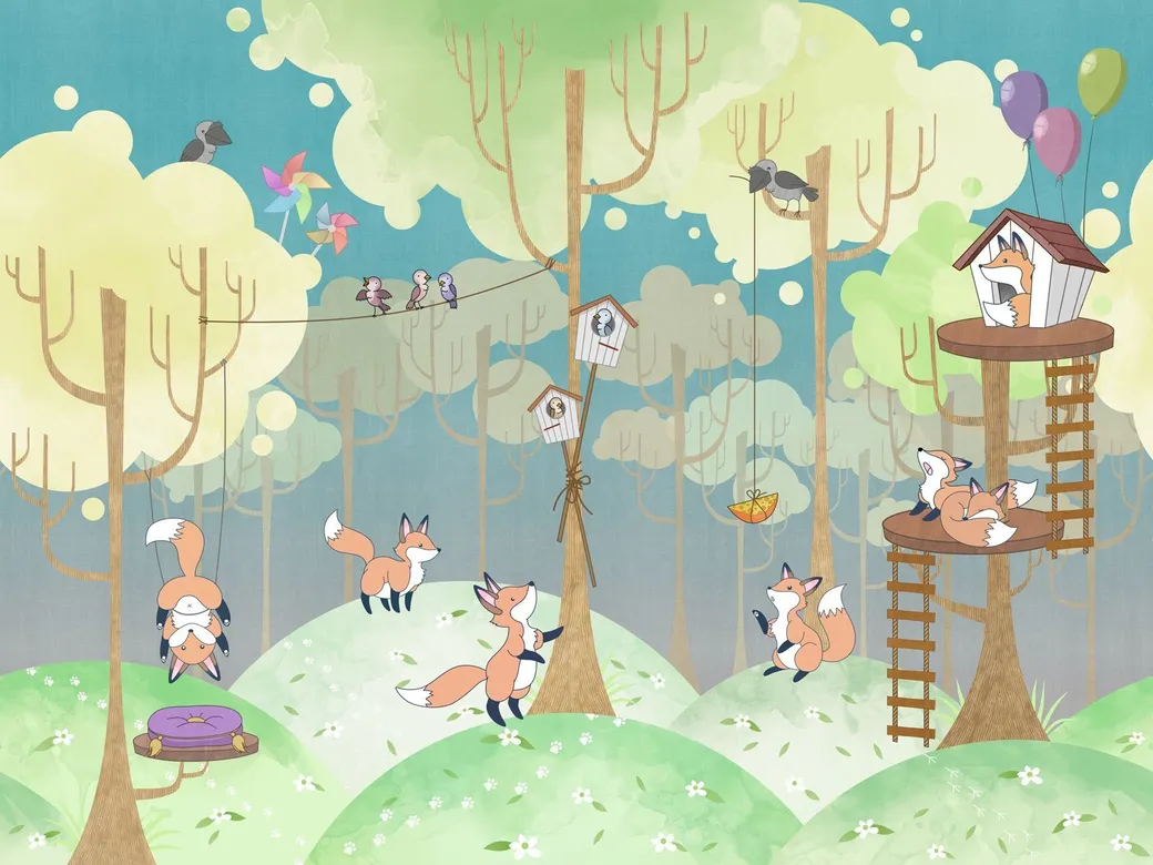 Фрески Affresco из коллекции «Сказки Affresco» представляют собой качественные фотообои, созданные специально для детских комнат. Они выполнены с использованием флизелиновой основы, что обеспечивает лёгкость монтажа и долговечность. Дизайн включает изображения животных, что делает интерьер уютным и привлекательным для малышей.