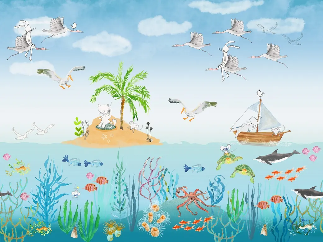 Фрески Affresco из коллекции "Сказки Affresco" созданы с использованием современных технологий и мастерства художников. Эти фотообои с морской тематикой идеально подойдут для оформления детских комнат, добавляя в интерьер яркие и жизнерадостные цвета.