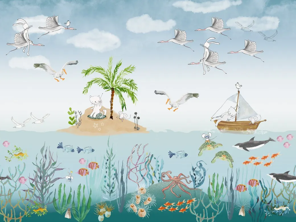 Фрески из коллекции Сказки Affresco предназначены для детских комнат и выполнены в морской тематике. Уникальная технология их производства обеспечивает высокое качество изображения и долговечность. Эти фотообои способны преобразить пространство, добавляя в него яркие цвета и сюжетные элементы.