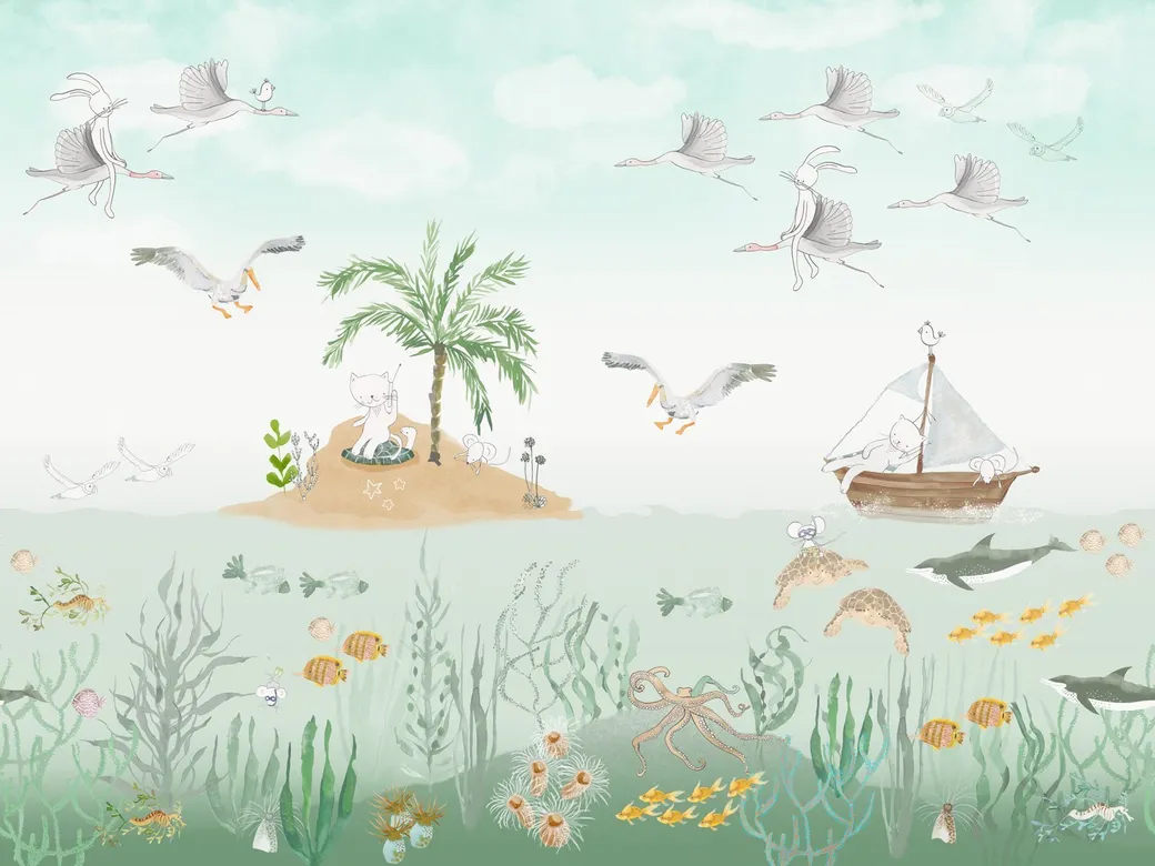 Фрески Affresco из коллекции "Сказки" предназначены для оформления детских помещений. Они выполнены вручную и включают сюжетные рисунки с морской тематикой, что делает их идеальным выбором для создания яркой и жизнерадостной атмосферы.