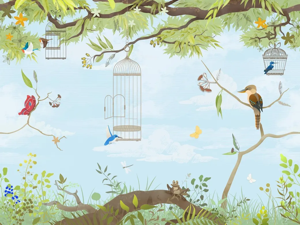 Фрески Affresco из коллекции Сказки Affresco представляют собой элегантное решение для оформления детских комнат. Изображение птиц в сочетании с мягкими оттенками зеленого и голубого создает уютную атмосферу. Эти фрески подходят для девочек и прекрасно дополнят интерьер.