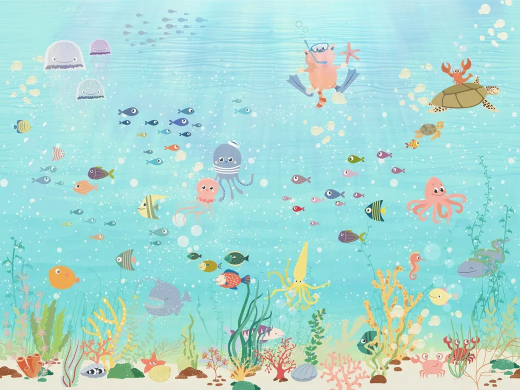 - Тематика: рисунок подходит для малышей, включает морскую тематику и животных.