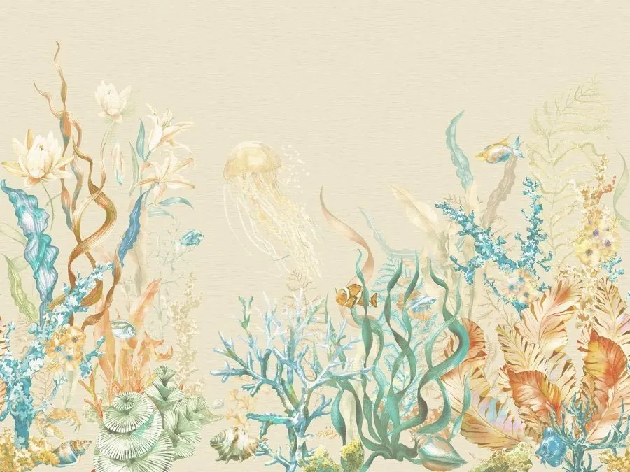- Морская тематика: Рисунок с изображением растений и веток создает гармоничное пространство.