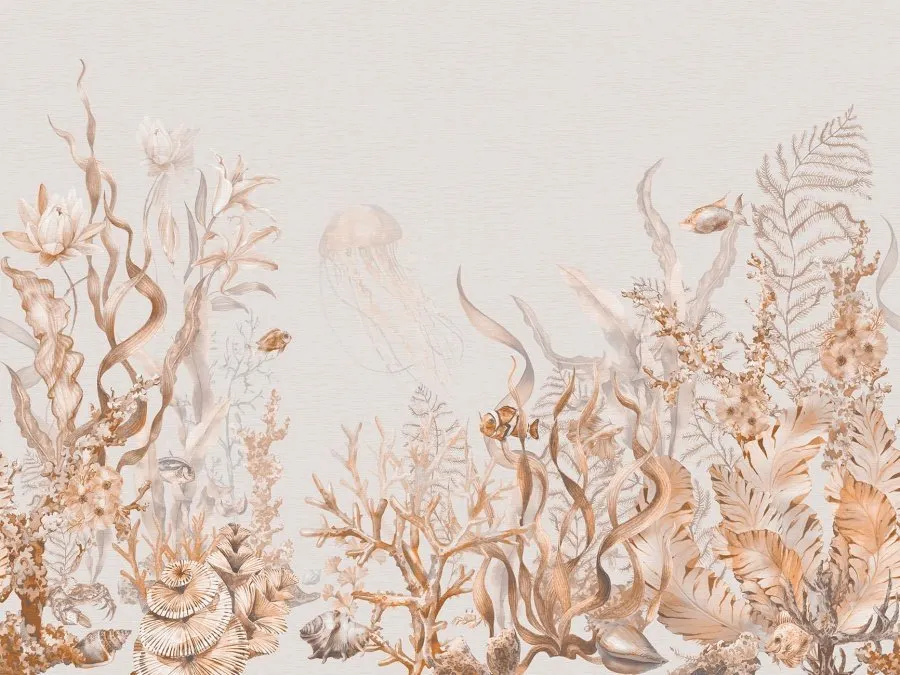Фрески Affresco из коллекции Trend Art представляют собой инновационное решение для декорирования интерьеров. Сочетание морской тематики и растительных элементов позволяет создать эффект свежести и романтики в помещениях, таких как гостиная и спальня.