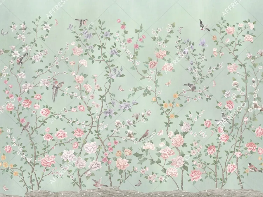 Фрески Affresco из коллекции Wallpaper part 1 представляют собой стильное решение для оформления интерьера. Данная модель сочетает в себе элементы классического и современного стилей, с изображением цветов и птиц, что создает атмосферу гармонии и спокойствия.