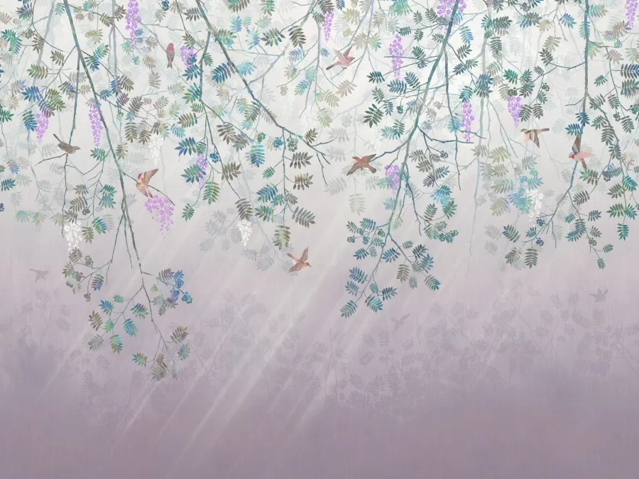 - Рисунок: Растения, ветки, листья, птицы