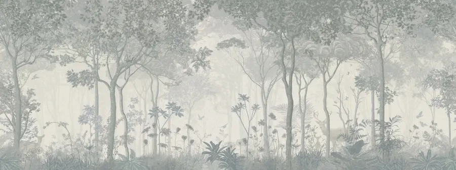 Фреска Affresco из коллекции Wallpaper part 2 выполнена в сером цвете с изображениями растений и животных. Она предназначена для декорирования жилых пространств, таких как гостиные и спальни.