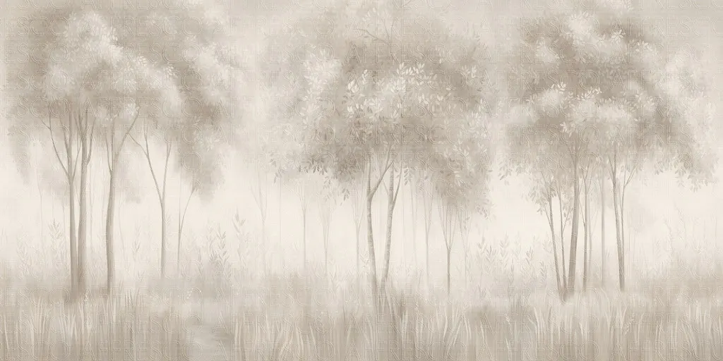 Фрески Affresco из коллекции Wallpaper part 3 Forest предназначены для создания уютной атмосферы в помещениях. Они идеально подходят для гостиных и спален благодаря своему природному мотиву и спокойной цветовой палитре. Эти флизелиновые панно легко монтируются и придают интерьеру стильный вид.