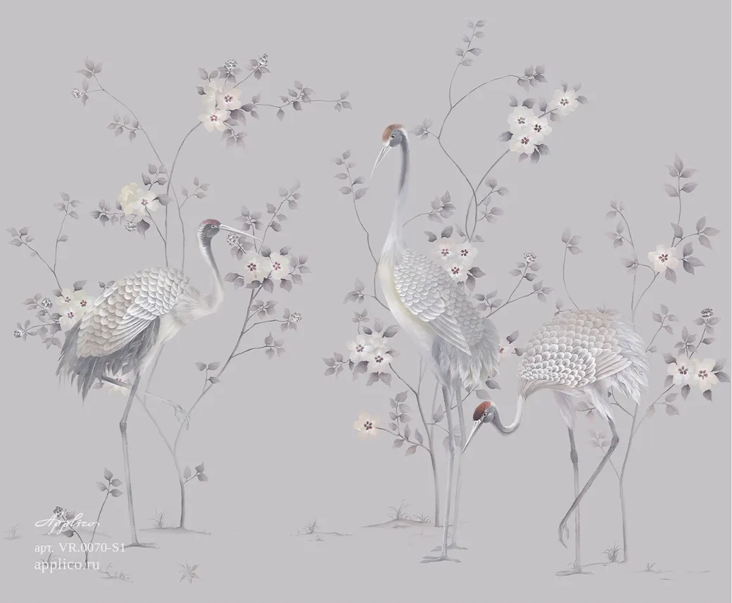 Фрески Applico из коллекции Five представляют собой стильное решение для декорирования интерьера. Модель арт-VR0070-S1 выполнена в серых тонах с изображениями цветов и птиц в стиле шинуазри. Подходит для использования в спальне и гостиной, создавая атмосферу уюта и элегантности.