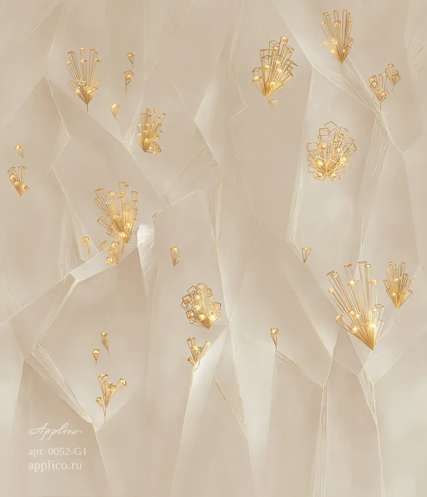 Фрески Applico из коллекции Four представляют собой стильные фотообои с геометрическим узором. Подходят для оформления современных интерьеров, таких как гостиные, спальни и кабинеты. Цветовая гамма включает бежевые и золотые оттенки, что позволяет создать атмосферу богатства и уюта.