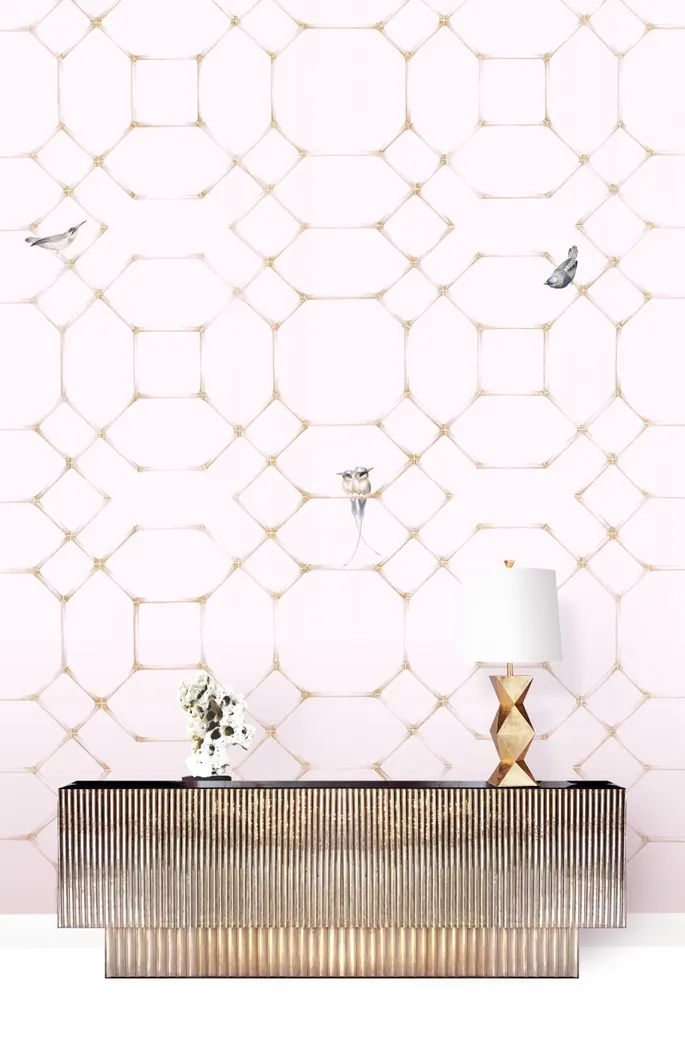 Фрески Fresq из коллекции Classic Collection представляют собой стильные флизелиновые обои с геометрическим узором и изображением птиц. Эти обои подходят для различных помещений, таких как гостиные, кабинеты и спальни. Они созданы с учетом современных дизайнерских трендов, что обеспечивает актуальность в интерьере.