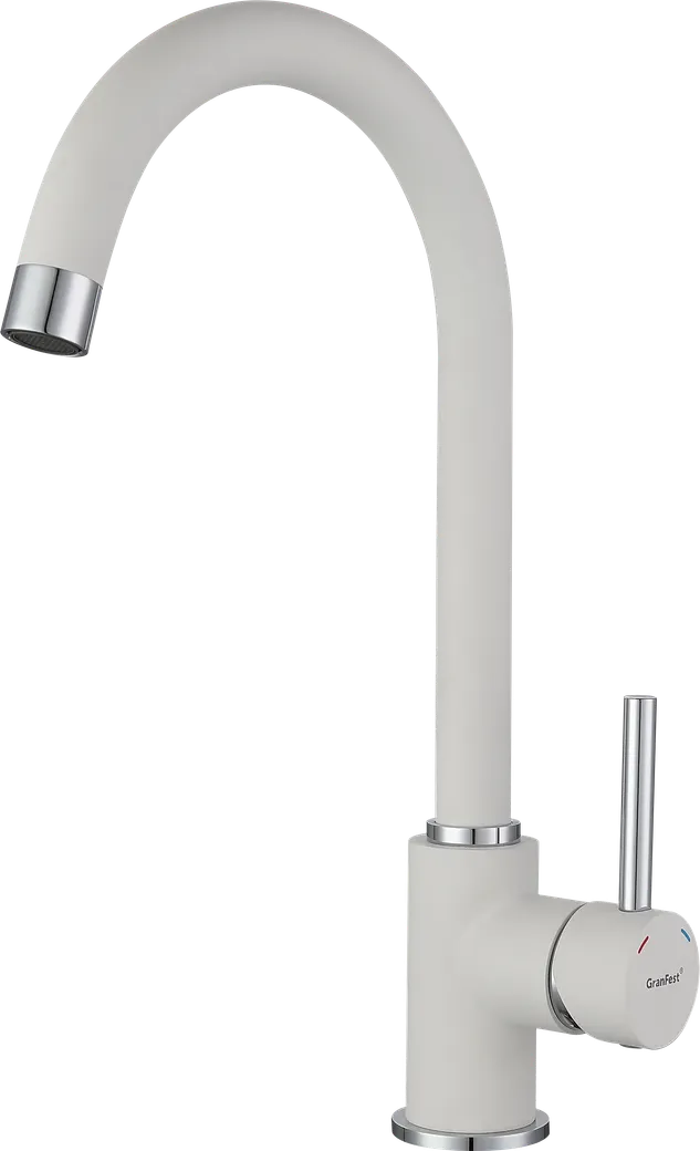 Поверхность смесителя окрашена в цвета мраморных моек GranFest. Изящный и надёжный смеситель прекрасно впишется в интерьер любой современной кухни. Смеситель оснащен: - керамическим картриджем, диаметром 35 мм; - гибкой подводкой на 60см. Вращение излива позволит Вам удобно располагать его во время мойки посуды. в излив смесителя уже установлен аэратор, это экономит воду во время мытья, и сохраняет тишину.