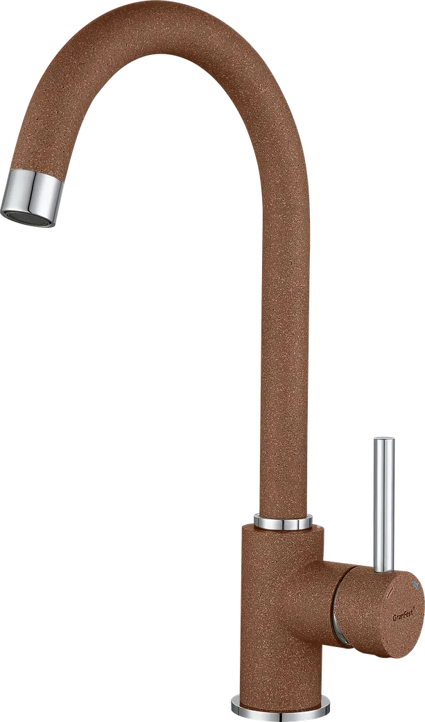 Поверхность смесителя окрашена в цвета мраморных моек GranFest. Изящный и надёжный смеситель прекрасно впишется в интерьер любой современной кухни. Смеситель оснащен: - керамическим картриджем, диаметром 35 мм; - гибкой подводкой на 60см. Вращение излива позволит Вам удобно располагать его во время мойки посуды. в излив смесителя уже установлен аэратор, это экономит воду во время мытья, и сохраняет тишину.