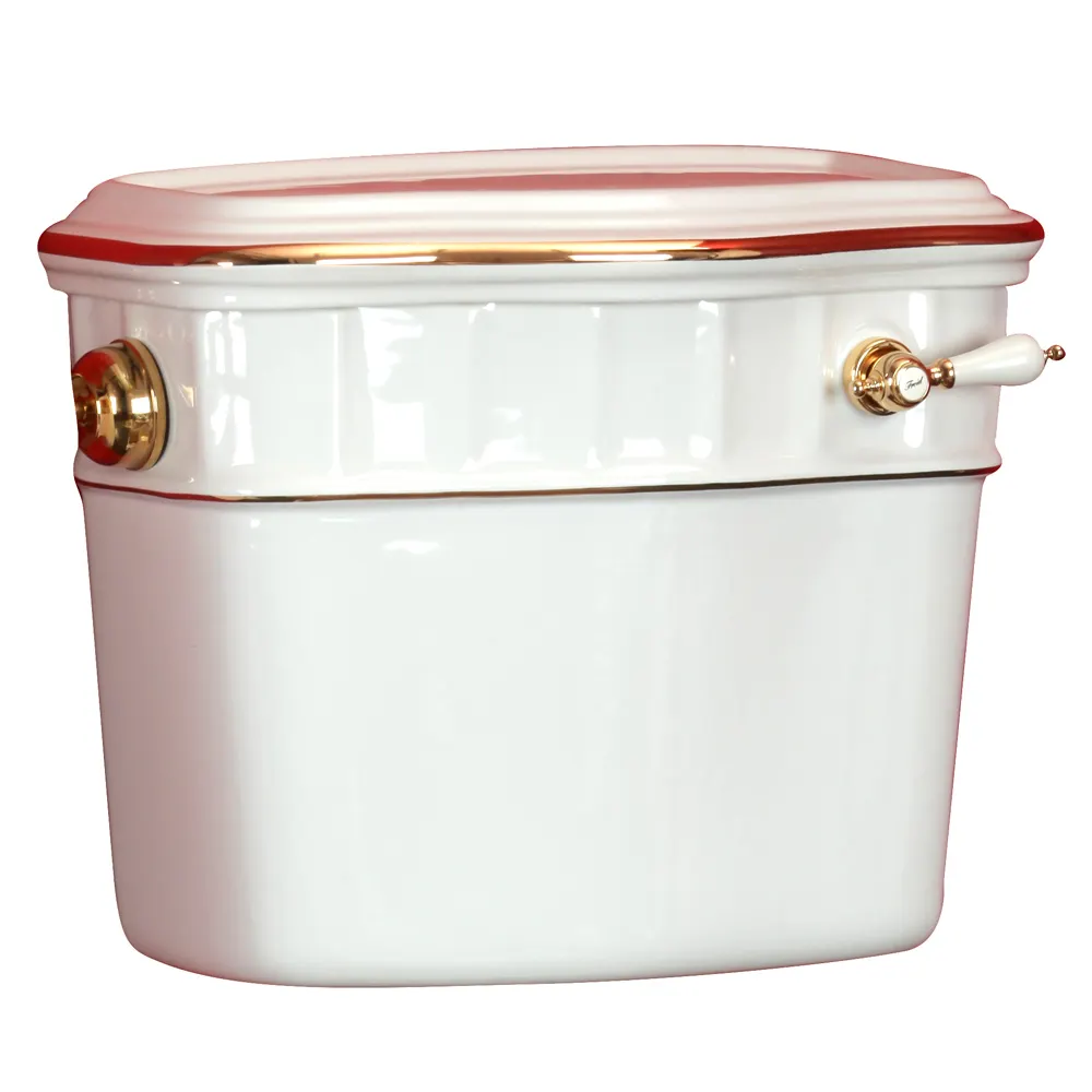 GIANETA Бачок подвесной низкий, д/напольного WC, с отв.д/ручки слива, декор: D1 золото/белая керами арт-20935