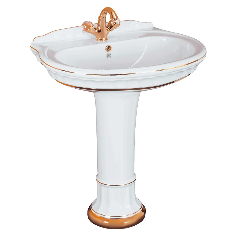 GIANETA Тюльпан напольный 70 см. раковина на колонне с крепежем, керамика белая/декор D1 золото арт-31166