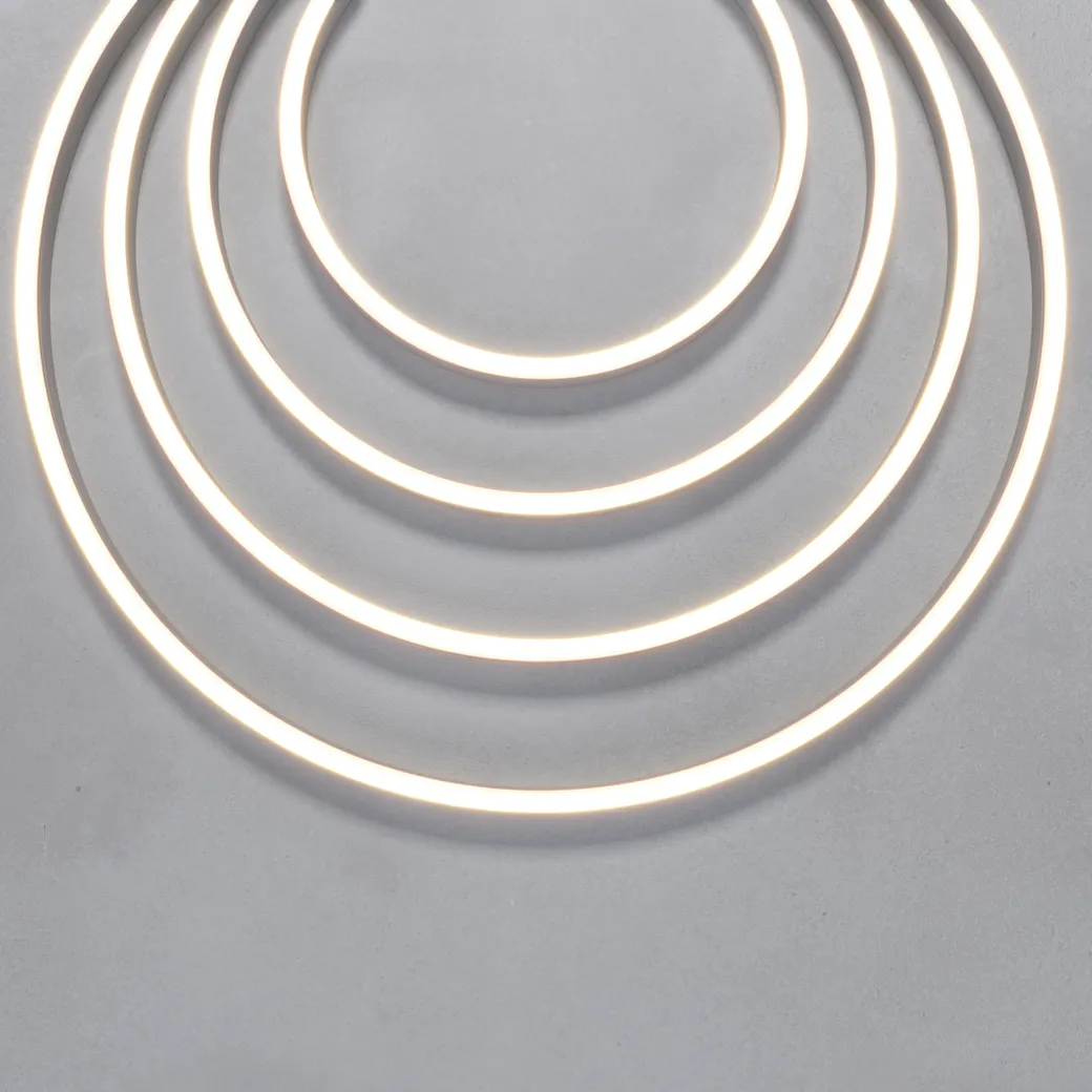 Гибкий неон с вертикальным изгибом позволяет создавать динамичные световые решения, огибая контуры в вертикальной плоскости. Мягкий рассеянный свет, направленный вверх, идеально подойдет для контурной подсветки потолков, ниш, элементов интерьера и фасадов зданий. Высокая степень защиты от пыли и влаги IP67 позволяет использовать неон как в сухих, так и во влажных помещениях, а также отлично подойдет для подсветки на улице.