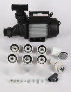 Гидромассаж "Латунь" Aquanet (6 форсунок). Применяется в ваннах небольшого объема, помпа мощностью 0,9 кВт. Форсунки "Латунь" имеют ручную регулировку направления потока воды, форсунки нельзя закрывать. Гидромассажные форсунки выполнены из латуни, что обеспечивает лучшее хромирование. Плоская форсунка плотно прилегает к акрилу, поэтому не ощущается дискомфорт от выступов декоративной крышки джета. Наличие дополнительного переключателя спинного массажа делает гидромассаж более продуктивным.