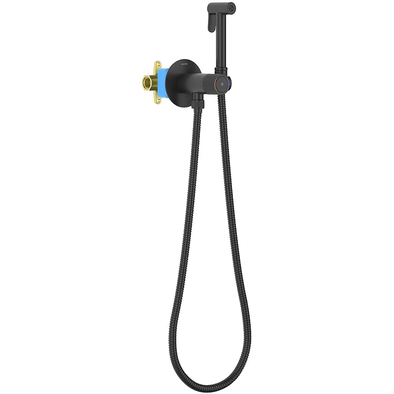 Гигиенический душ со смесителем Aquatek Бетта AQ1023MB Черный матовый — идеальное решение для современного интерьера ванной комнаты. Этот встраиваемый гигиенический душ выполнен в стильном черном матовом цвете и оснащен керамическим картриджем Click-open, что обеспечивает удобство в использовании и долговечность.