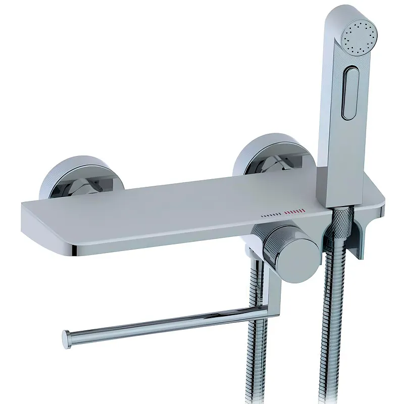 - Продуманная конструкция: Данный гигиенический душ в современном стиле оснащён полкой и держателем для туалетной бумаги, что обеспечивает дополнительное удобство.