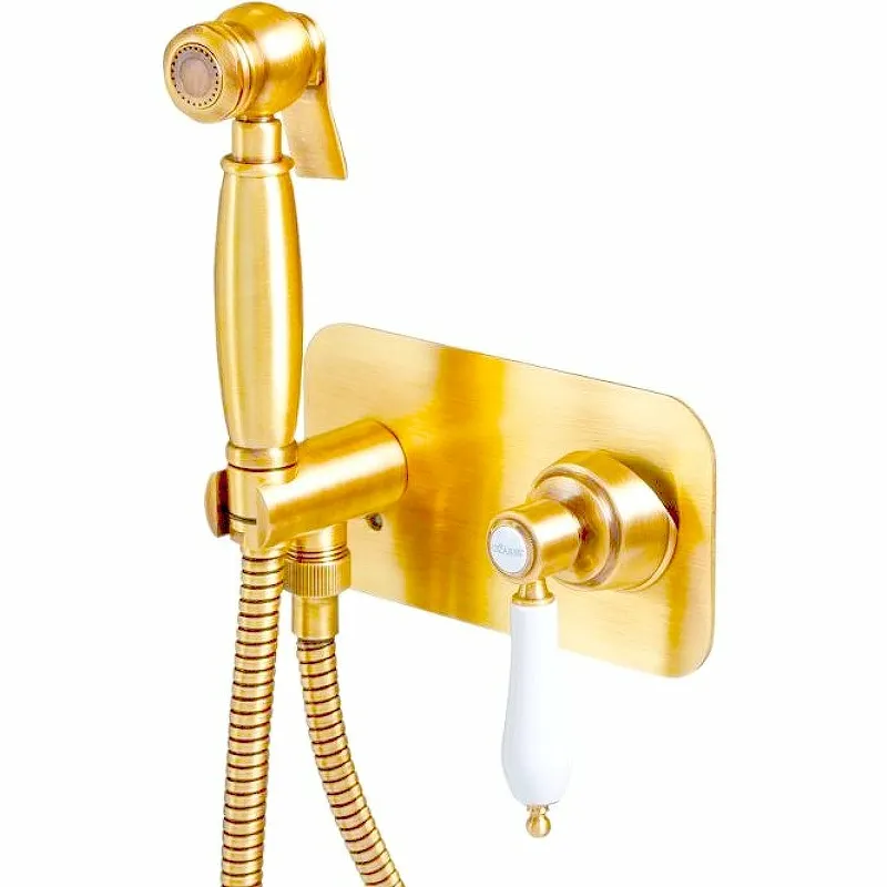 Гигиенический душ со смесителем Cezares Aphrodite APHRODITE-DIF-03/24-Bi идеально подходит для ванной комнаты в стиле ретро. Выбирая гигиенический душ золото 24 карат, вы получаете не только практичное решение, но и элемент роскоши в интерьере. Этот душ изготовлен из высококачественной латуни и оснащен однорычажным управлением для удобства использования.
