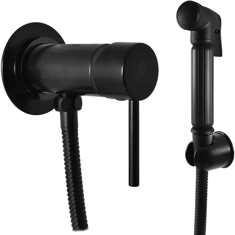 - Полная комплектация: Включает смеситель, гигиеническую лейку, душевой шланг и держатель.