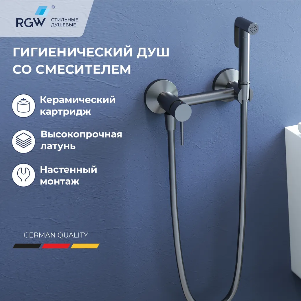 Гигиенический душ со смесителем RGW SP-215-Gr Серый браш (Смеситель/шланг/гигиенический душ/)