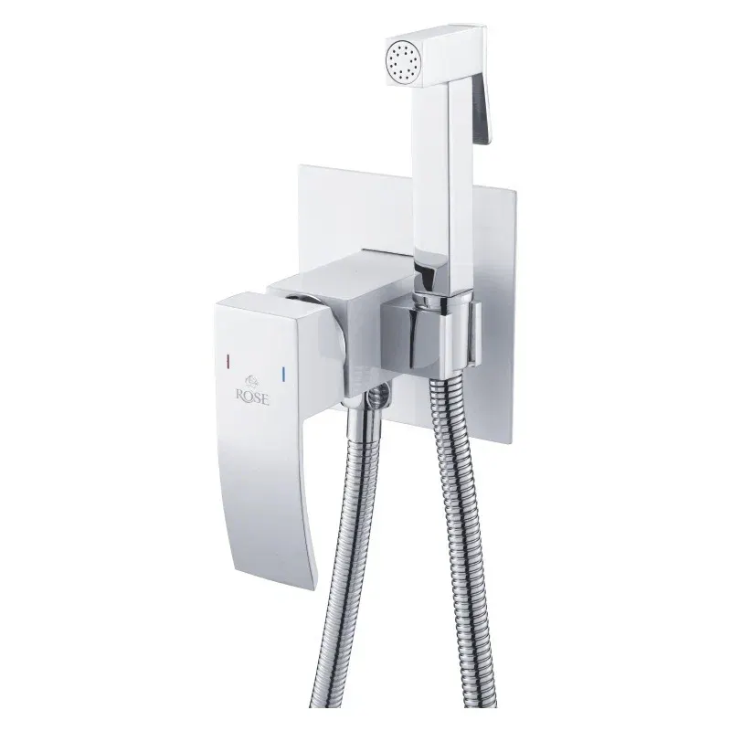 Гигиенический душ со смесителем Rose R1505F, белый/хром. Управление: рычажное. Материал: латунь. Монтаж: внутренний (скрытый).