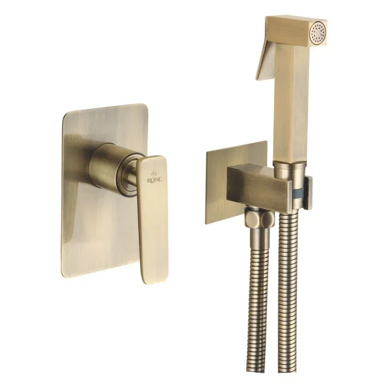 Гигиенический душ со смесителем Rose R1605Q, бронза. Управление: рычажное. Материал: латунь. Монтаж: внутренний (скрытый).
