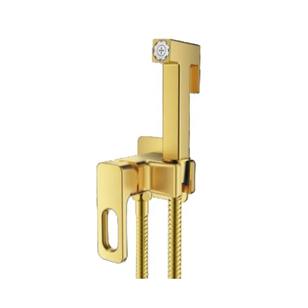 Гигиенический душ со смесителем представляет собой удобный альтернативный вариант стандартному биде. Шланг обладает длиной 120 см что вполне достаточно для комфортного использования. Душевой шланг имеет металлическую оплетку, что обеспечивает его прочность и защиту от перекручивания. Лейка для гигиенического душа хорошо держится в руке и обеспечивает комфорт всех проводимых манипуляций с использованием биде для унитаза. В комплекте встраиваемый смеситель (внутренняя часть в комплекте), лейка гигиенического душа, держатель лейки и душевой шланг. Устройство оснащено керамическим картриджем и рычажным управлением, что гарантирует плавную и точную регулировку воды. Присоединительный размер - G 1/2, предназначен для одного потребителя. Защита от обратного потока и ограничение температуры отсутствуют. Смеситель с гигиеническим душем - идеальное решение для вашей ванной комнаты! Гигиенический душ позволяет поддерживать высокий уровень гигиены и комфорта. Вы сможете легко поддерживать чистоту и свежесть в любое время дня. • Материал - латунь • Цвет - сатин золотой • Керамический картридж 25мм - R500.25 • Взрывозащищенный шланг 1.2м - R404.12.03 • Гигиеническая лейка 1 режим - R460.04.03 (латунь)