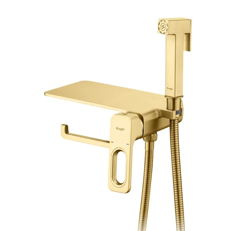 Гигиенический душ со смесителем встраиваемый с полкой и бумагодержателем Raglo , сатин золотой арт-R51.55.03