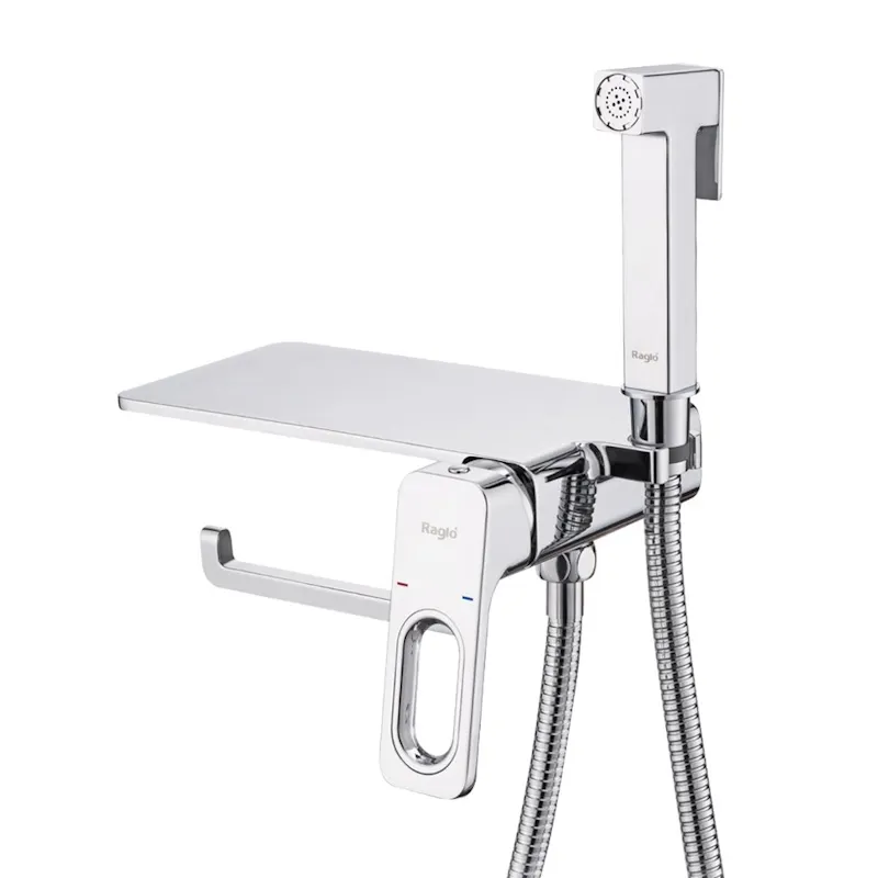 Гигиенический душ со смесителем встраиваемый с полкой и бумагодержателем Raglo , хром арт-R51.55