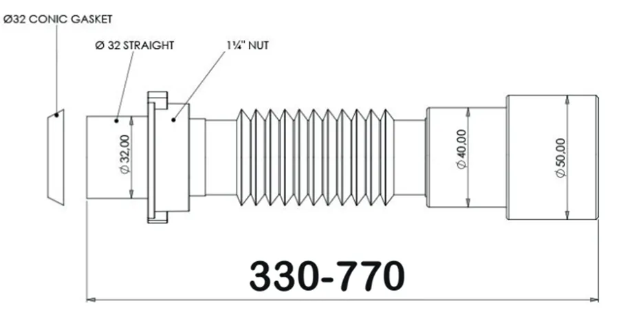 Гофрированное соединение Bettoserb для сифона 32-40/50 ммВодосливная труба, изготовленная в Сербии из полипропилена.Характеристики товара:- Диаметр выпуска: 32 мм; - Подключение к канализации: 40/50 мм; - Регулируемая длина: 330–770 мм. - Страна производитель: Сербия. Купить гофрированное соединение Bettoserb для сифона 32-40/50 мм можно можно на сайте bettoserb.com